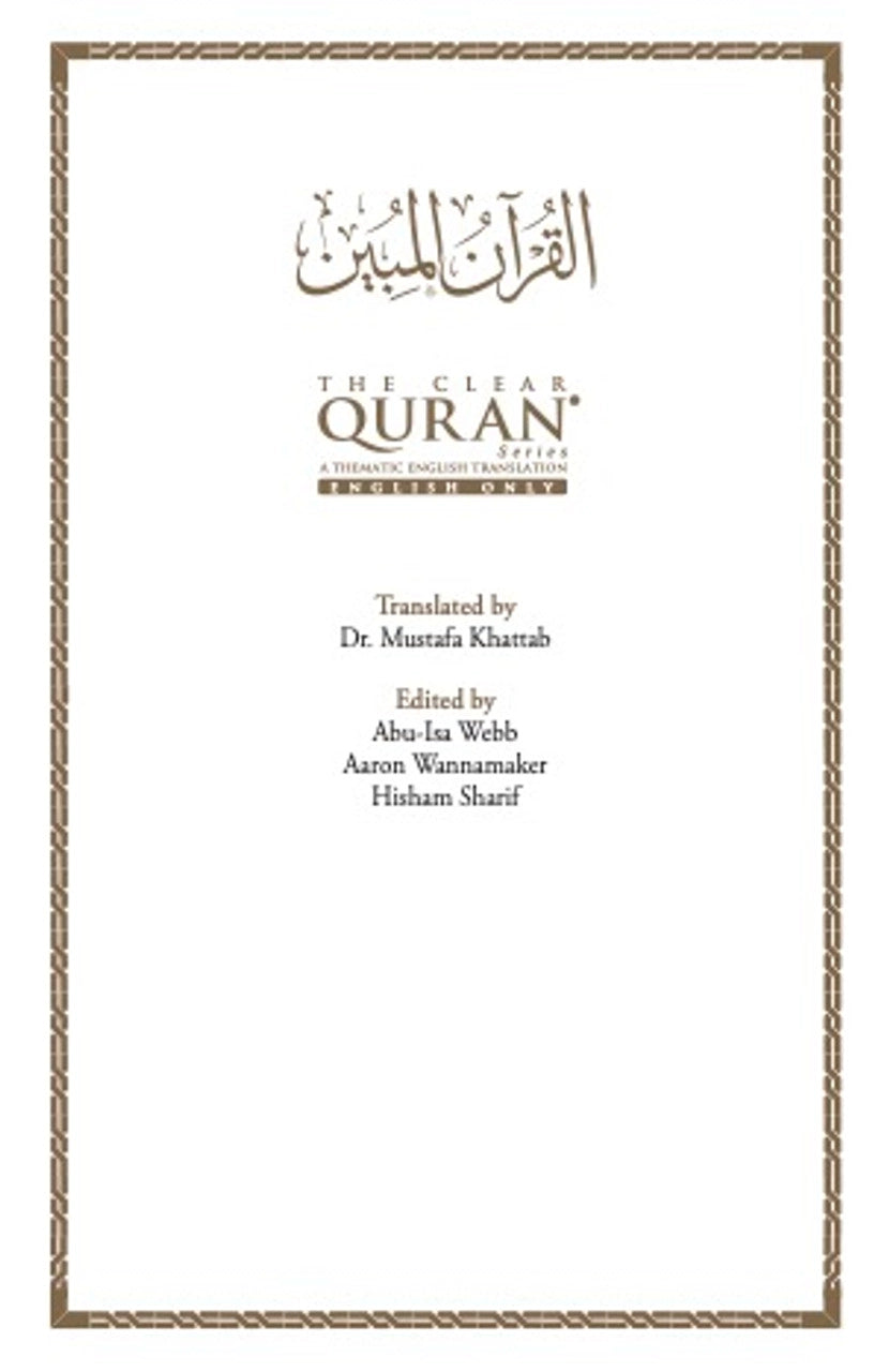 For a translation to do justice to the Quran and capture its elegance and vigor, it has to be accurate, smooth, eloquent, and accessible. Unlike most popular translations, The Clear Quran® Series masterfully passes on all counts. To achieve accuracy, the translator has made use of the greatest and most celebrated works of old and modern tafsir (Quran commentaries), and shared the work with several Imams in North America for feedback and insight. For clarity, every effort has been made to select easy to understand words and phrases that reflect the beauty, flow, and power of the original text. Along with informative footnotes and Sura (chapter) introductions, verses have been grouped and titled based on their themes for a better understanding of the chapters, their main concepts, and internal coherence. Thanks to our dedicated team of scholars, editors, and proofreaders, we believe that what you are holding in your hands now is the finest translation of the Final Revelation.