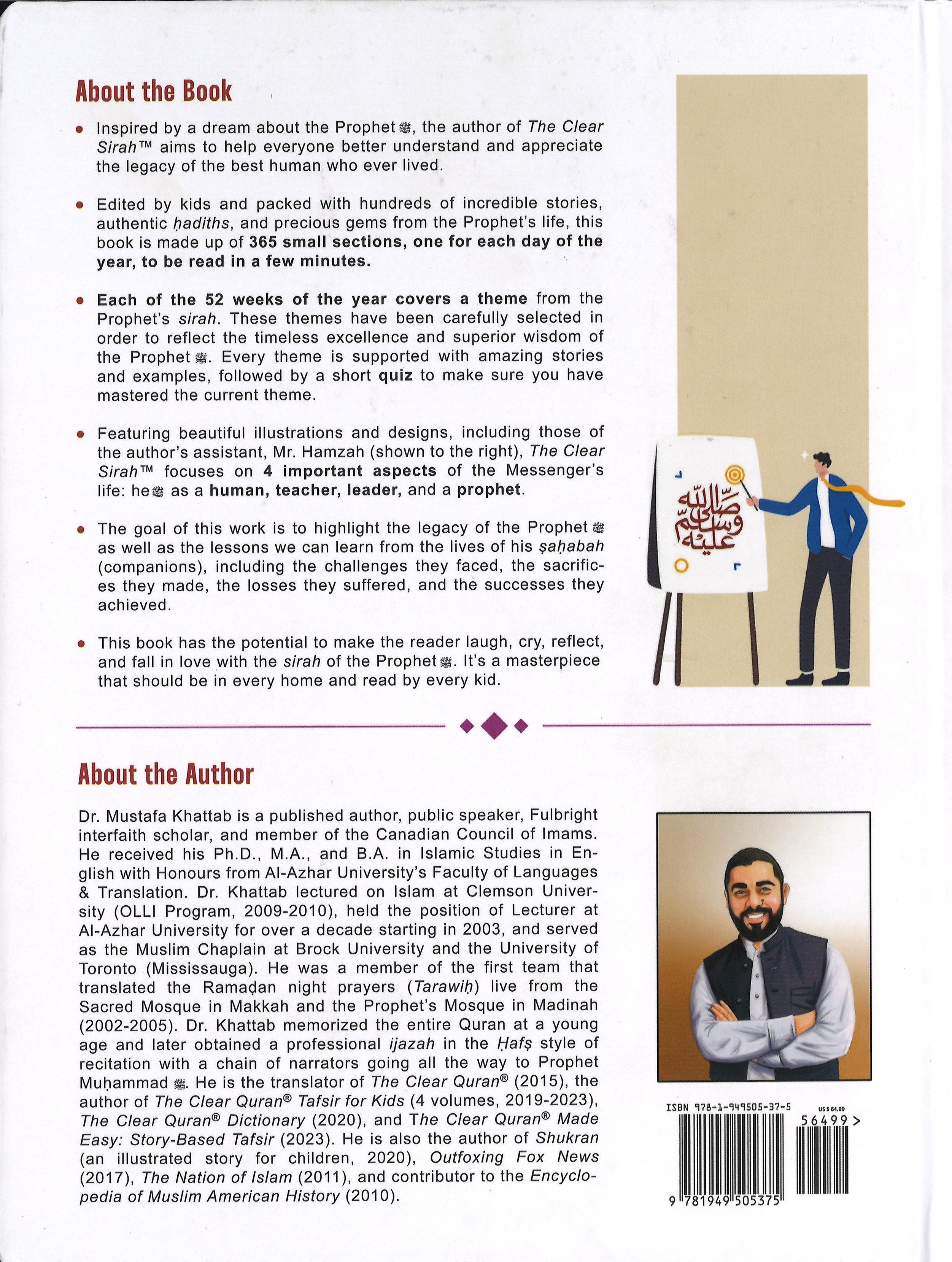 • Featuring beautiful illustrations and designs, including those of the author's assistant, Mr. Hamzah (shown to the right), The Clear Sirah focuses on 4 important aspects of the Messenger's life: he ﷺ as a human, teacher, leader, and a prophet ﷺ.